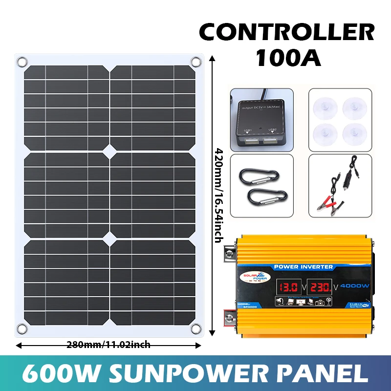 6000W Heavy-Duty Solar Generator – 110V/220V Power Inverter + 12V 100A MPPT Controller Complete Off-Grid Kit