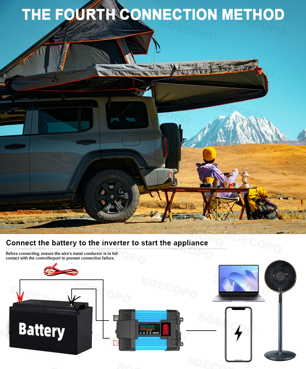 ▸Inverts 12V DC to 110V/220V AC for high-power devices.