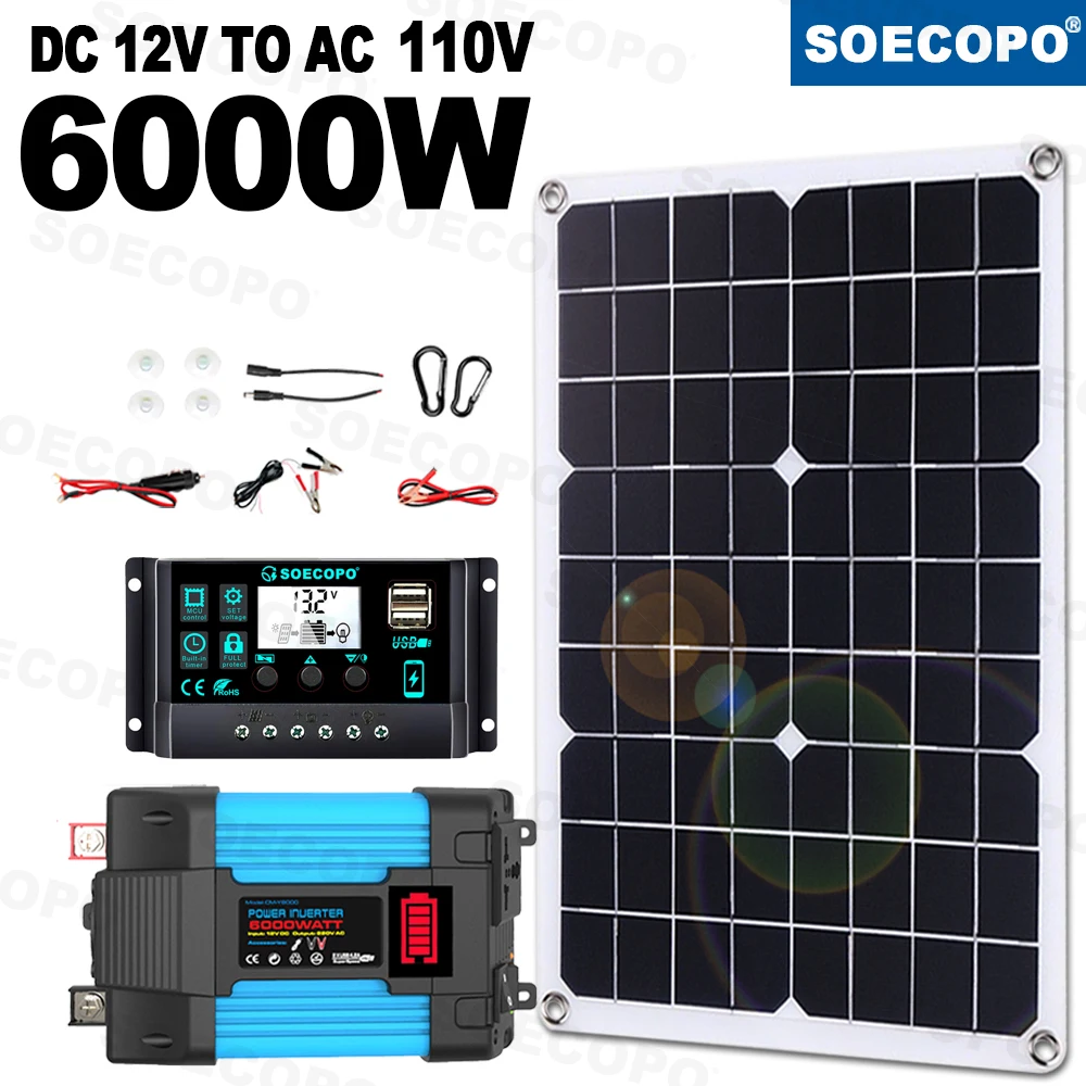 6000W Solar System DC12V to 110V/220V Off-Grid Inverter System 100A Controller 500W Panel for Home RV Camping CE Certified