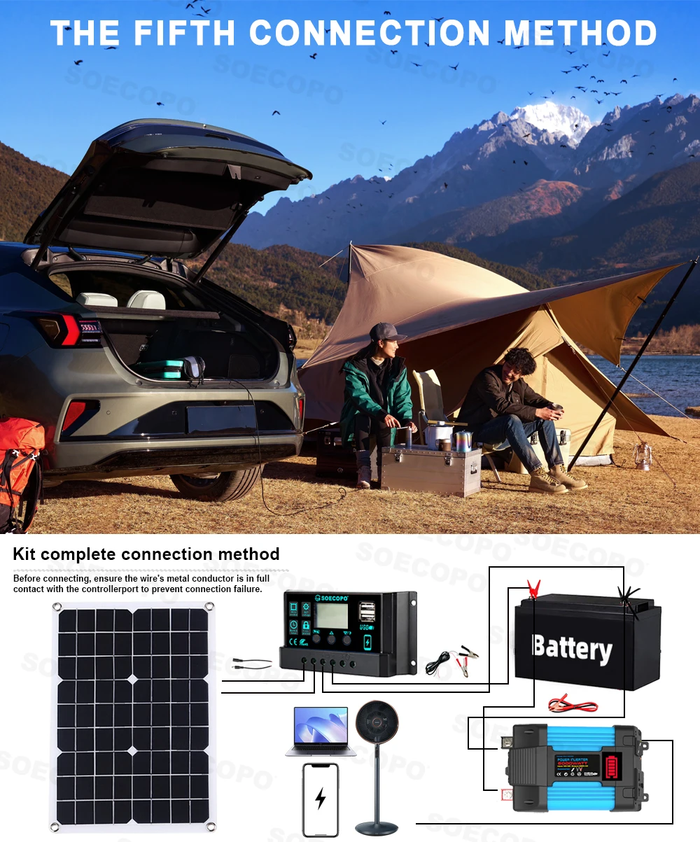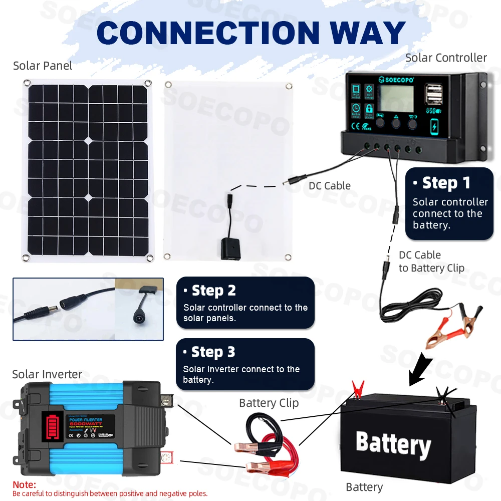 ▸Match total power: Solar peak 500W + Inverter continuous 500W.