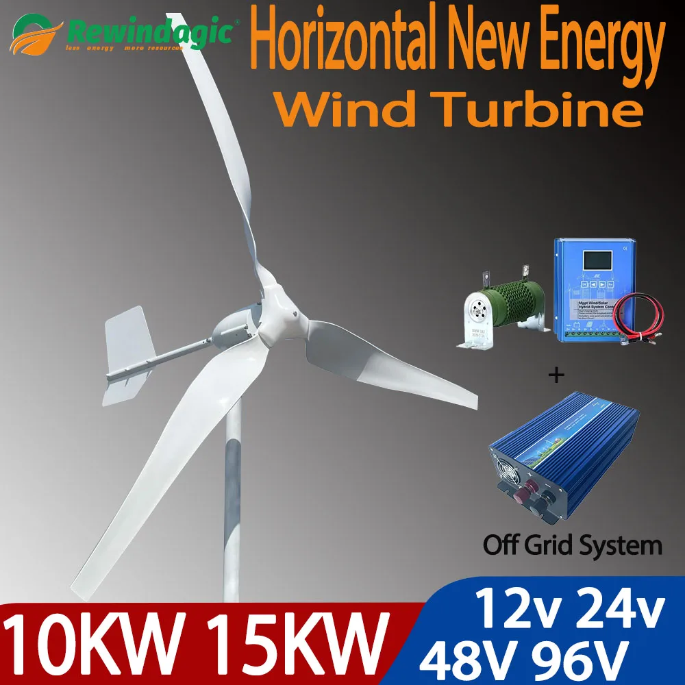 CE Low Noise 10KW 15KW 24v 48v 96v Electrical Generator Horizontal Wind Turbine motor With Off grid System For Household