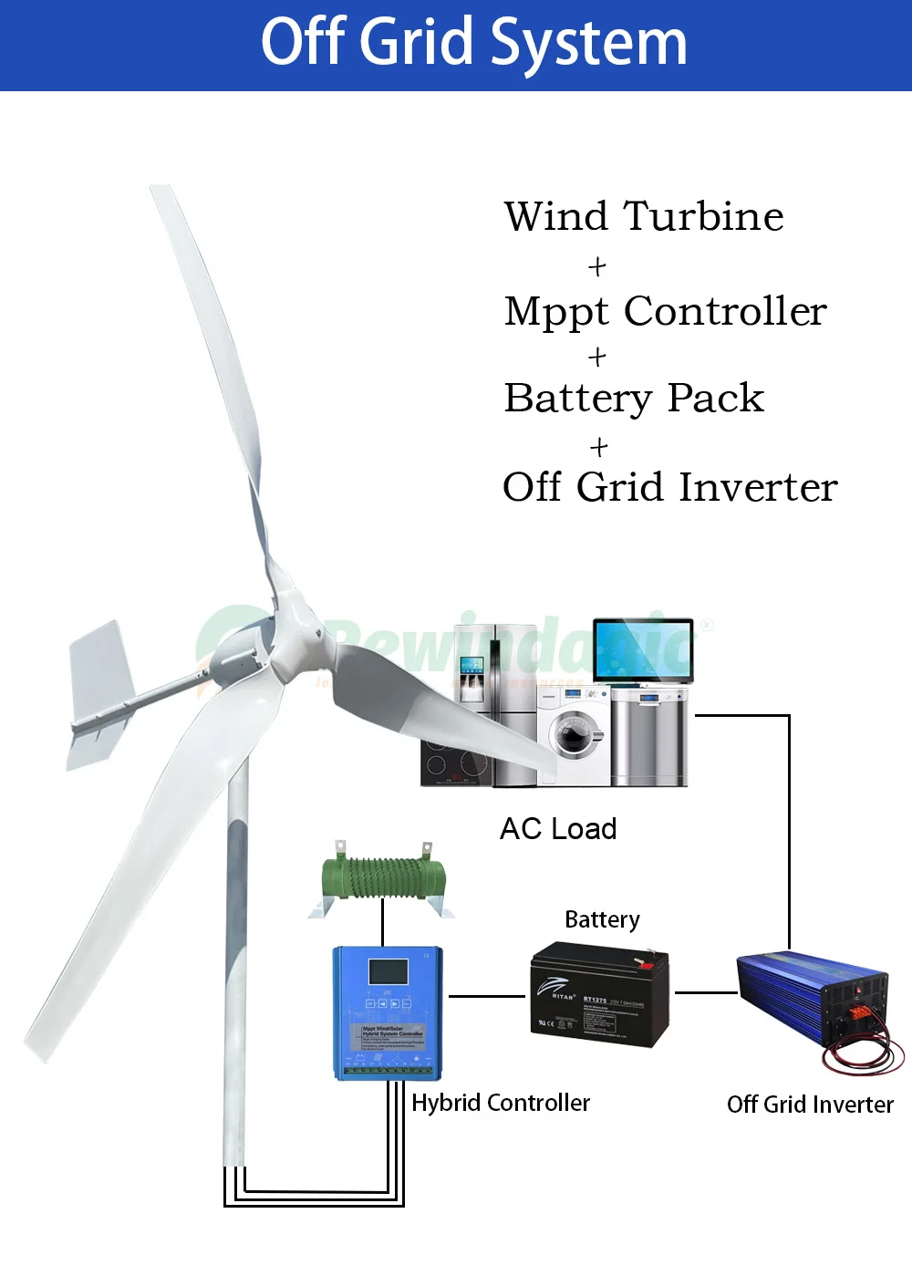 Wind Turbine Only, Off Grid System 2, Off Grid System 1, With Controller 1, With Controller 2