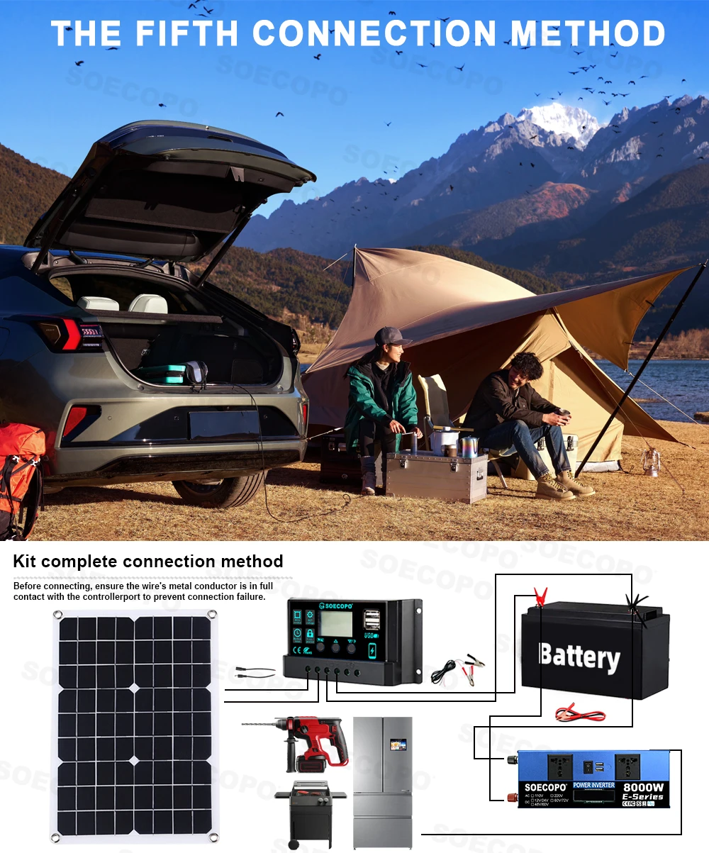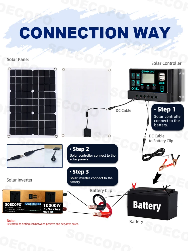 ▸Connection sequence: Solar → Controller → Battery → Inverter.
