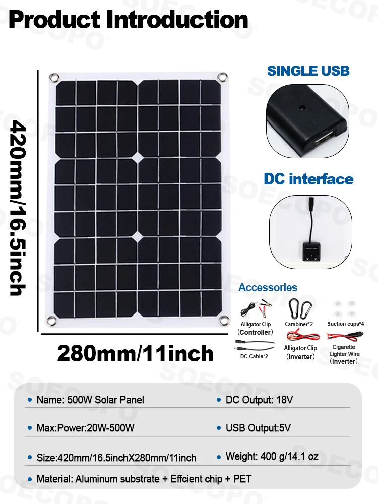 ▸Match total power: Solar peak 500W + Inverter continuous 1000W.